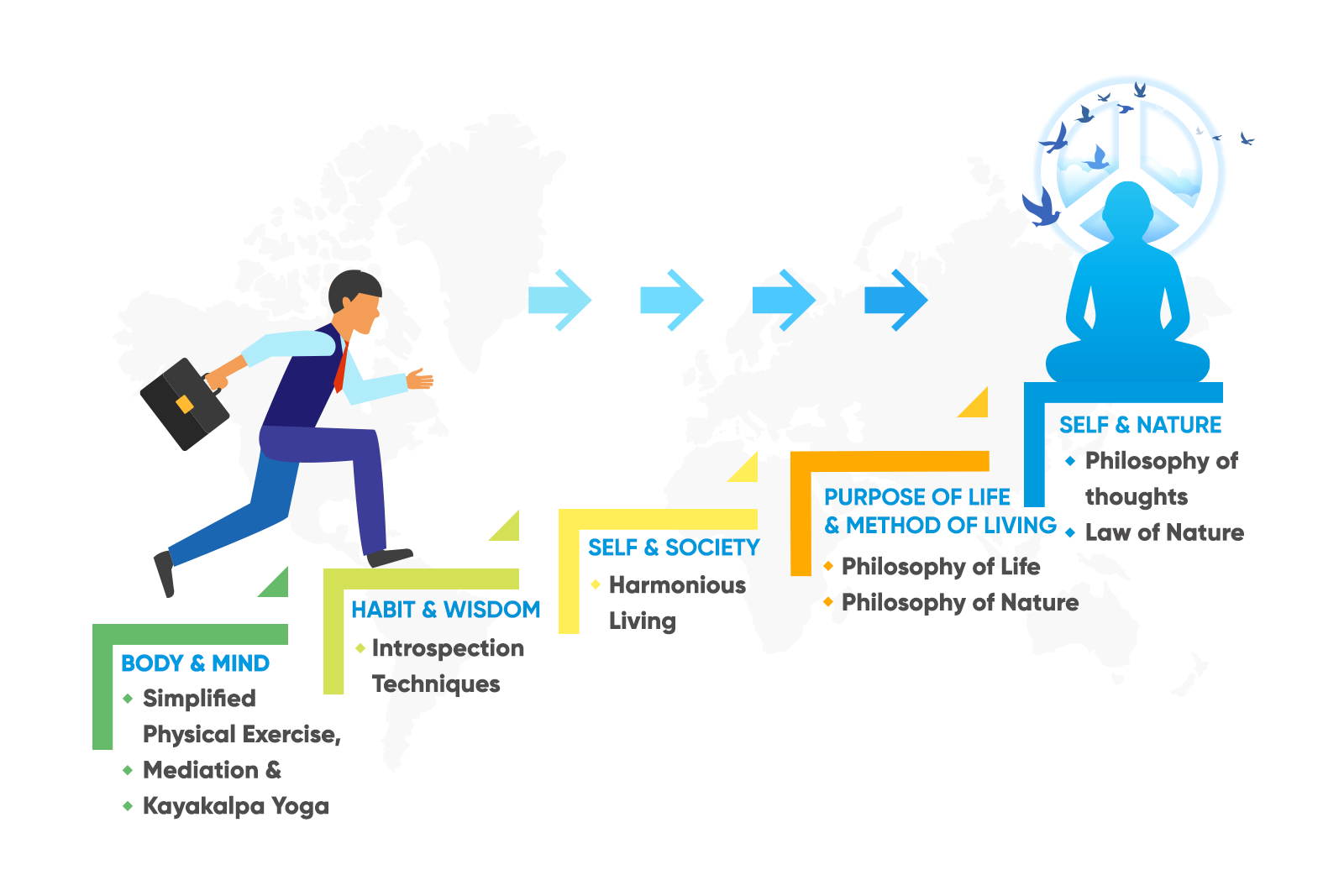 Introspection practices are undertaken in three phases. Introspection practices along with Meditation helps in Expansion of Mind, Maneuvering of Temperaments, Development of values such as Integrity, Equanimity, Love, Compassion, Strength of Character, Courage, Development of Morality and Eradication of Impurities through self-analysis. These practices lead to Sublimation and Self-Realization.